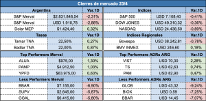 La escalada de tensión entre Estados Unidos e Irán sacudió este jueves a los mercados financieros globales y locales. Las amenazas de Donald Trump dispararon el precio del crudo por encima de los USD100 dólares. Este escenario de incertidumbre geopolítica hundió los principales índices de Wall Street y arrastró a los activos argentinos. Los bonos soberanos cerraron con pérdidas generalizadas, lideradas por los Globales 2046 (-0,67%) y 2030 (-0,03). En consecuencia, el riesgo país saltó un 3,2% y se posicionó en las 549 unidades, su nivel más alto en dos semanas. El conflicto en el Estrecho de Ormuz paralizó las negociaciones de paz y afectó seriamente al sector aerocomercial por el costo del combustible. En la plaza doméstica, el índice S&P Merval retrocedió 2,3% en una jornada de fuerte liquidación. Las acciones argentinas en Nueva York sufrieron el impacto más duro con desplomes que alcanzaron el 6,9%. Irán mantiene su postura desafiante ante el bloqueo portuario estadounidense y restringe el tránsito marítimo estratégico.