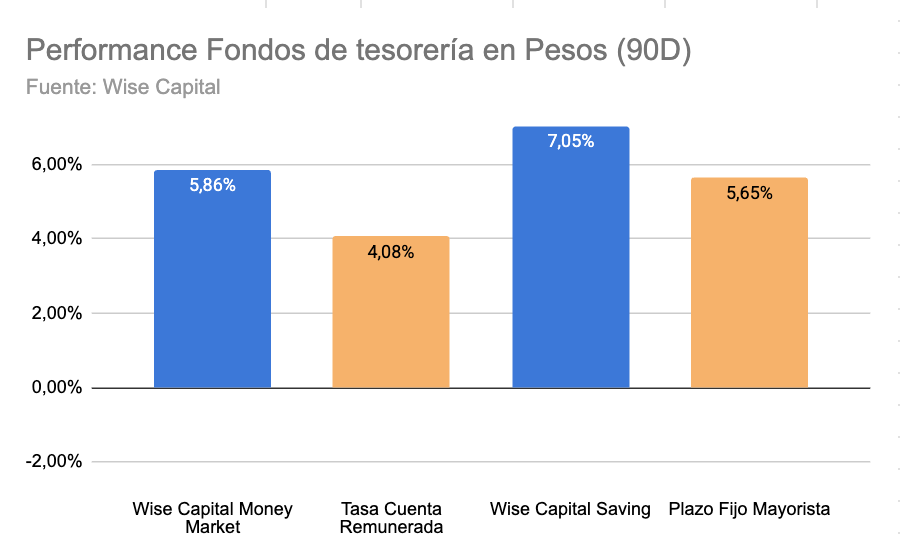 Los Fondos Wise Capital de Tesorería en pesos continúan como opción recomendada para hacer tasa con rendimientos en 90 días del orden de: