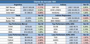 En el mercado de renta fija, los bonos soberanos mostraron un desempeño dispar: los Globales de corto plazo registraron ligeras bajas, mientras que los Bonares mantuvieron una tendencia más firme. Por su parte, las acciones argentinas en Wall Street finalizaron la rueda con resultados mixtos.