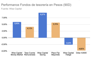 De cara a fin de mes, los Fondos Wise Capital de Tesorería se constituyen en la opción elegida para trabajar los pesos, ofrecen en los últimos 90 días rendimientos superiores a sus benchmarks.