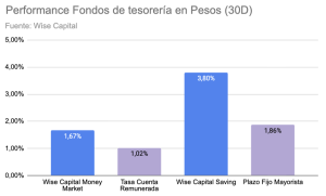 En tanto, los fondos Wise Capital de Tesorería continúan mostrando rendimientos superadores a sus benchmarks en los últimos 30 días.