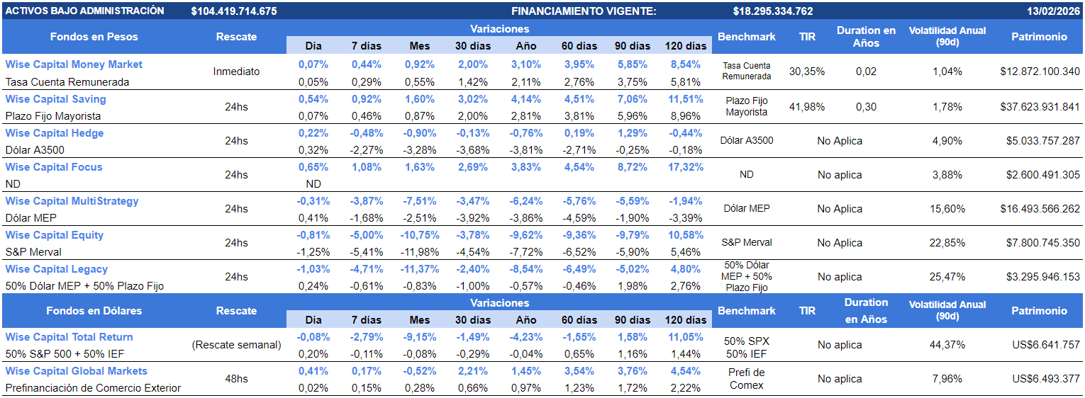 Con esto en mente y ante una calma cambiaria prolongada, el trade en pesos continúa con atractivo, donde fondos de Tesorería como el Wise Capital Money Market (+5,85%), el Wise Capital Saving (+7,06%) y el Wise Capital Hedge (+1,29%) ofrecen rendimientos positivos frente al dólar (-0,25%) los últimos 90 días. Esta estrategia de inversión para el corto plazo se sigue sosteniendo como una estrategia superadora para el manejo de los fondos a corto plazo.