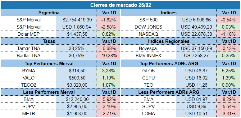 La plaza financiera local atravesó una jornada de marcada tensión este jueves, caracterizada por un fuerte retroceso en los activos de riesgo y una presión alcista sobre el Riesgo País, que escaló nueve unidades hasta situarse en los 554 puntos básicos, su nivel más alto desde el 21 de enero. (Click acá para continuar leyendo)